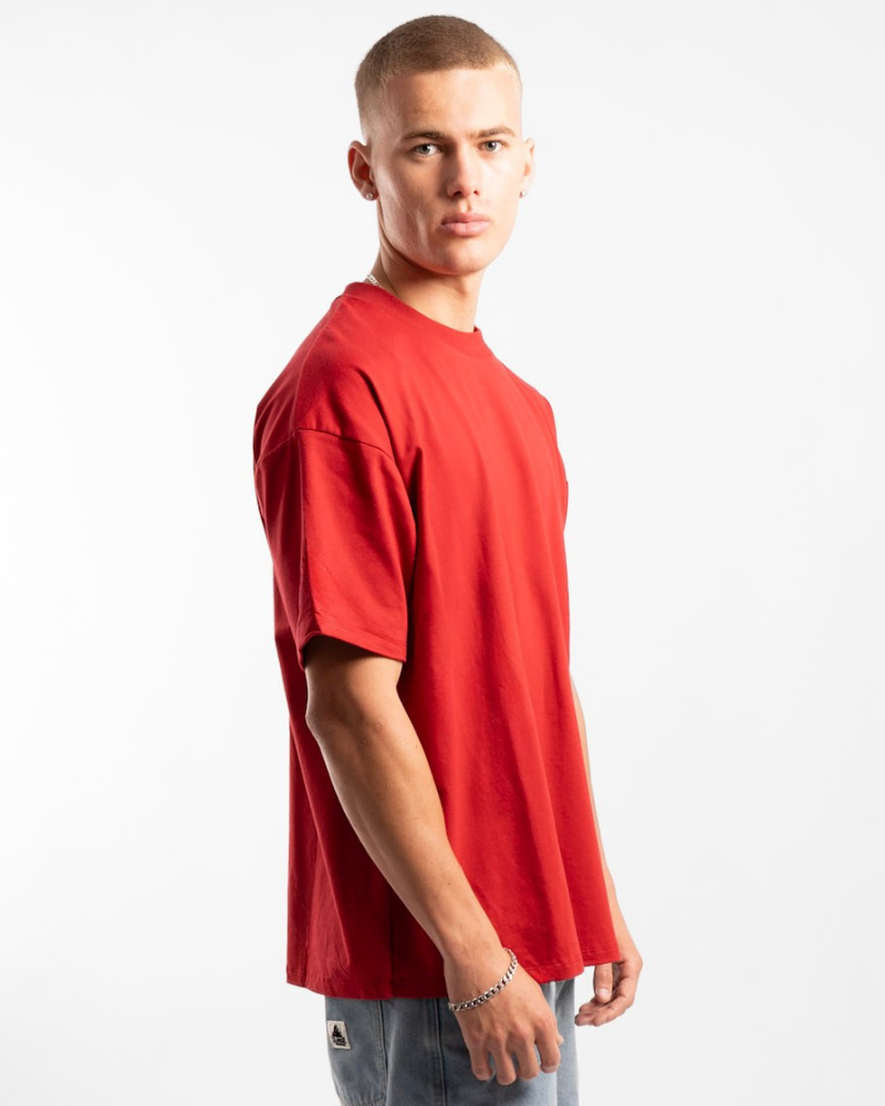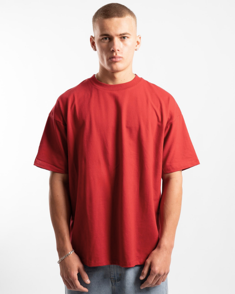 The Luxe Unisex Oversized Tee in Red. The same comfortable, stretchy, oversized fit you all know and love in fresh new colours.