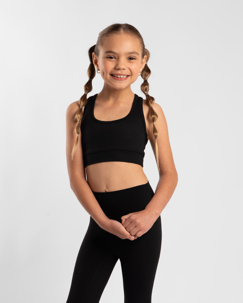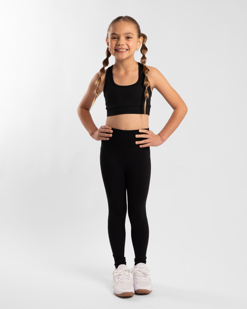 Introducing our Kids Racer Crop in Onyx. Same great fabric and fit as our Women’s Core Collection. Tailored to Kids sizes 6-14. Perfect for Dance Schools, Gymnastics, Athletics & Cheer Squads!